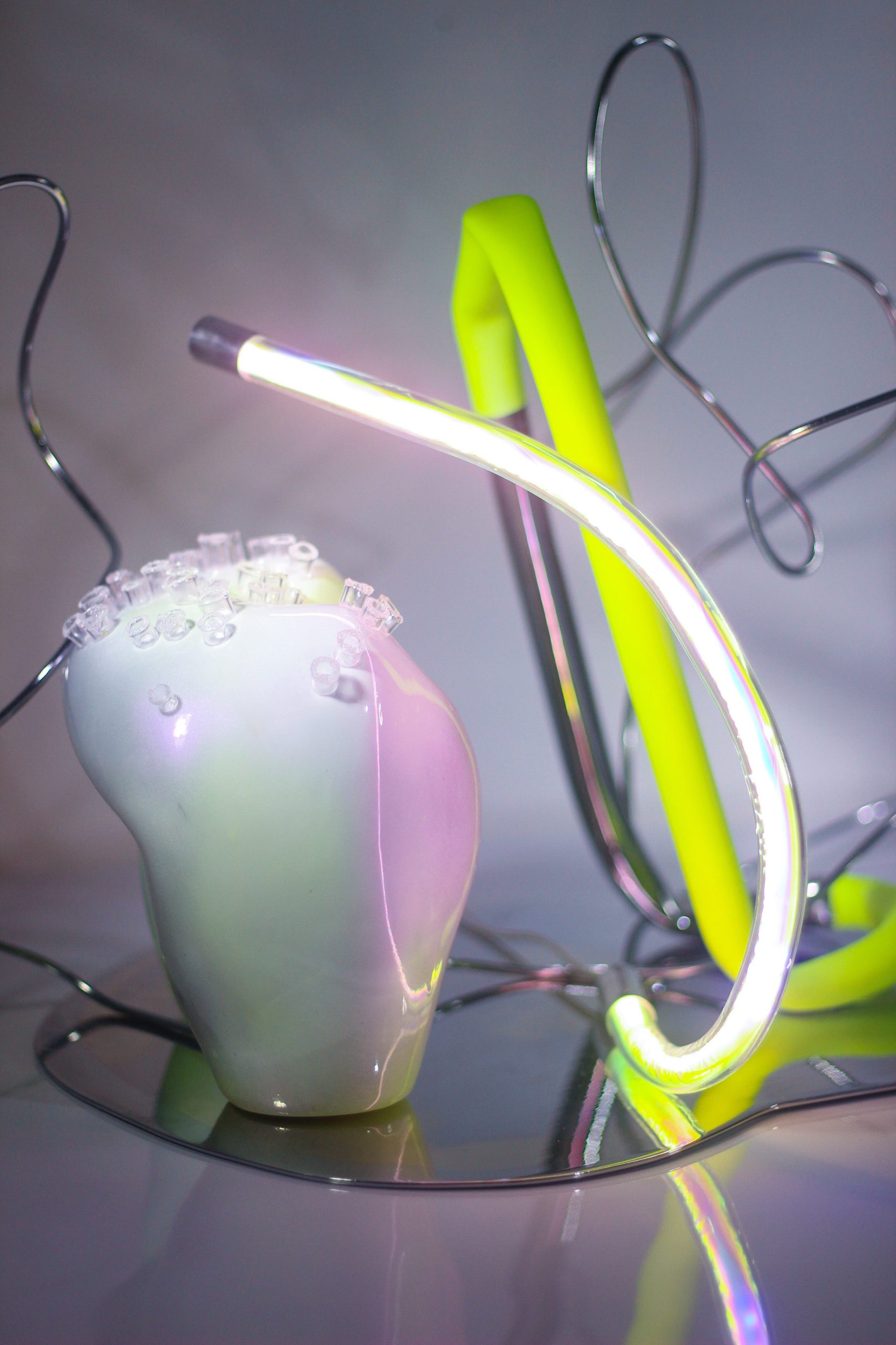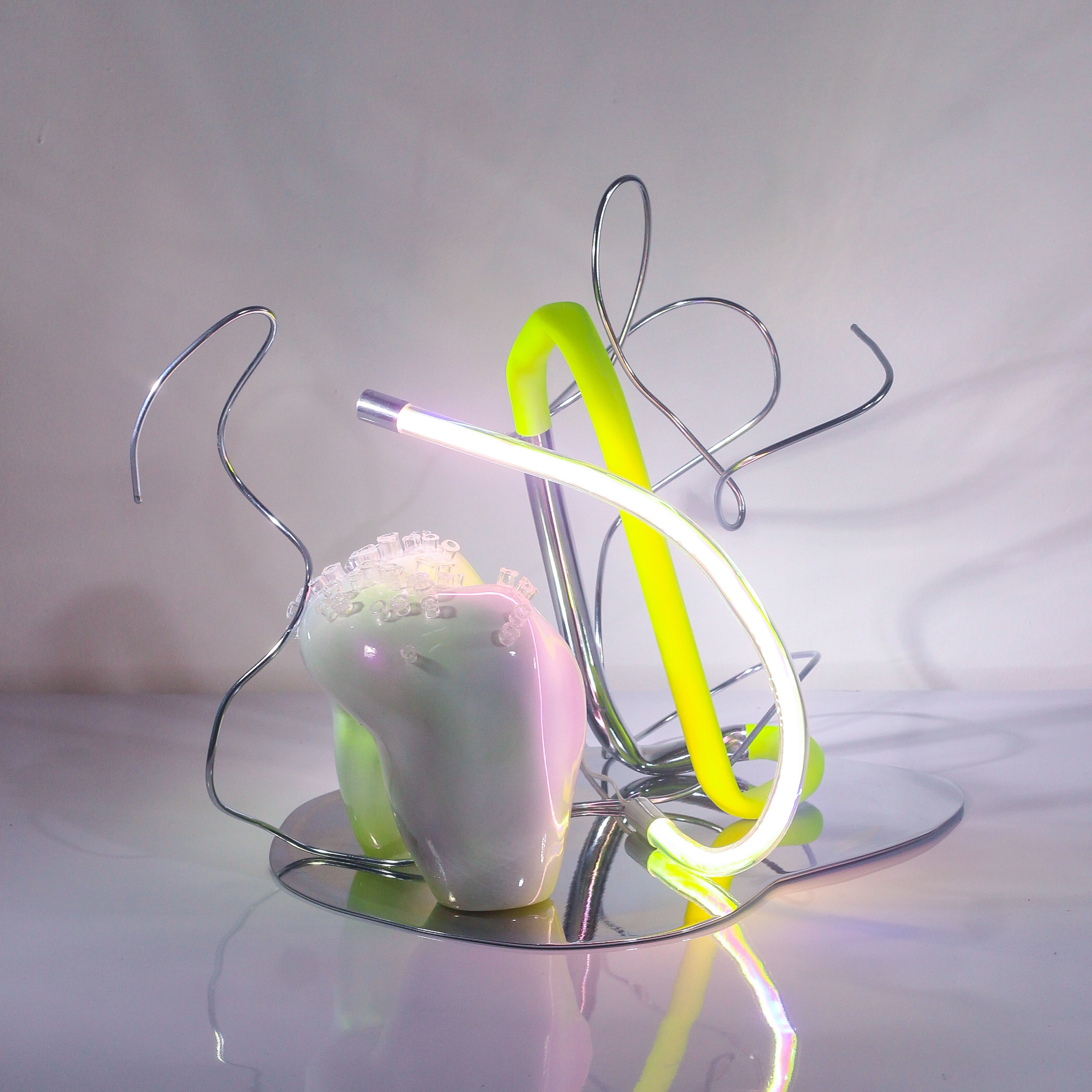 2022 | Tumpuk Lapis, Tampak Isi : Laras 9 | resin, acrylic, nylon, pigment, neon lights